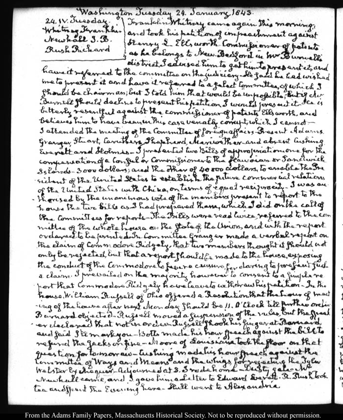 View full, authoritative transcriptions with page images of the diaries at John Quincy Adams Digital Diary part of the Primary Source Cooperative at the MHS.