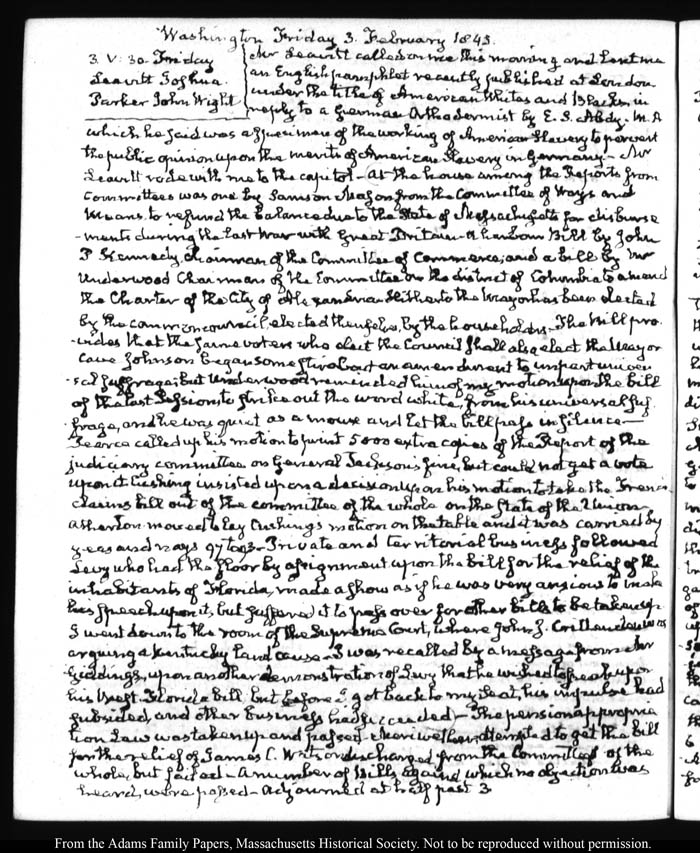 View full, authoritative transcriptions with page images of the diaries at John Quincy Adams Digital Diary part of the Primary Source Cooperative at the MHS.