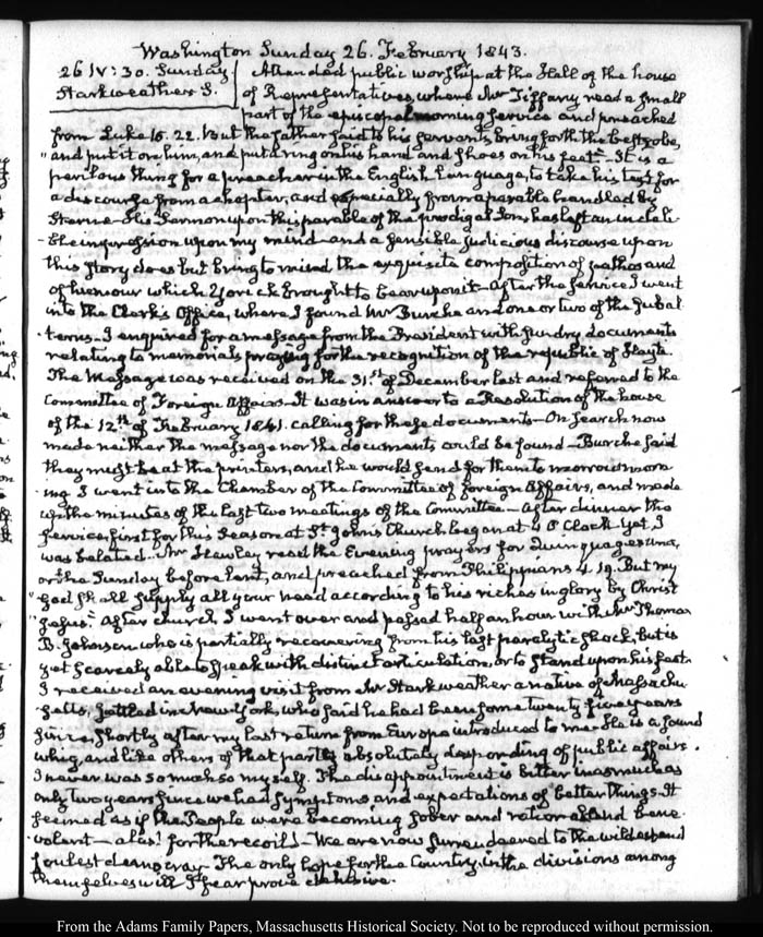 View full, authoritative transcriptions with page images of the diaries at John Quincy Adams Digital Diary part of the Primary Source Cooperative at the MHS.