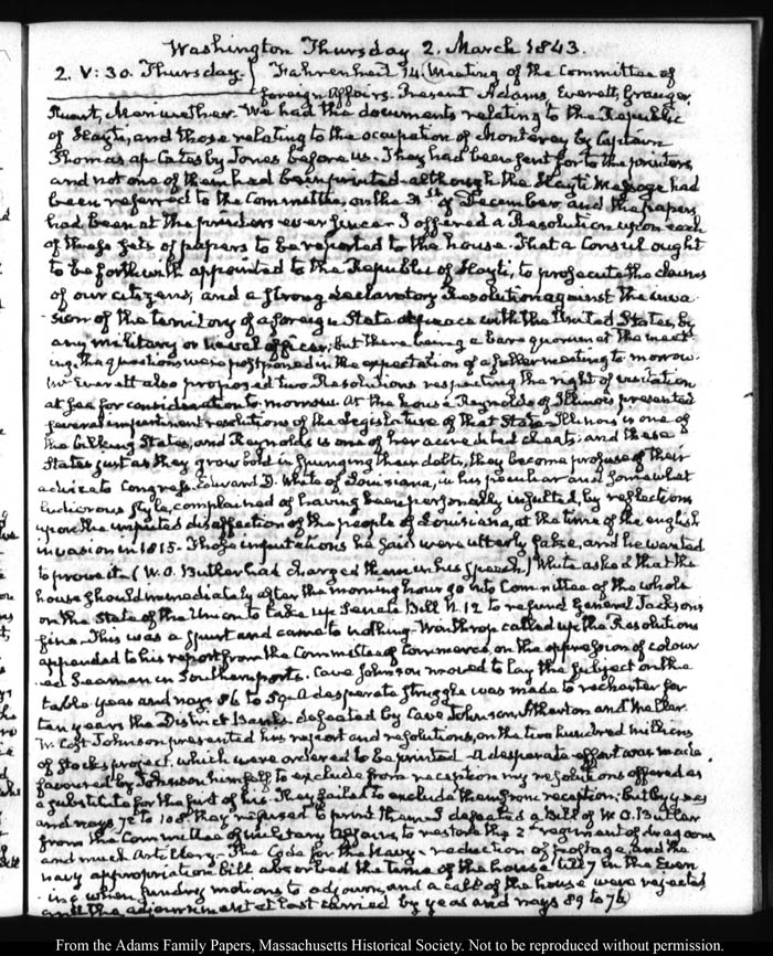 View full, authoritative transcriptions with page images of the diaries at John Quincy Adams Digital Diary part of the Primary Source Cooperative at the MHS.