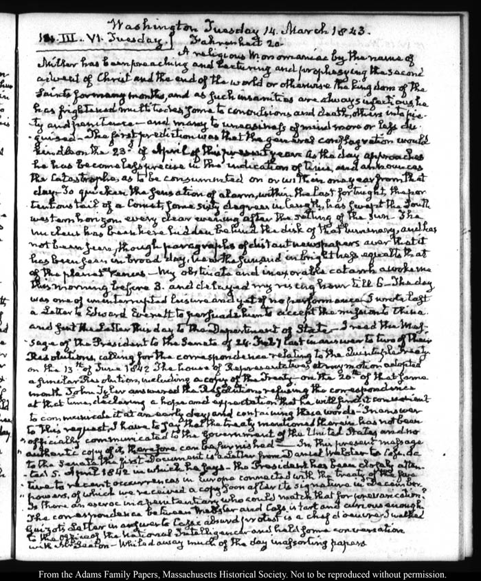 View full, authoritative transcriptions with page images of the diaries at John Quincy Adams Digital Diary part of the Primary Source Cooperative at the MHS.