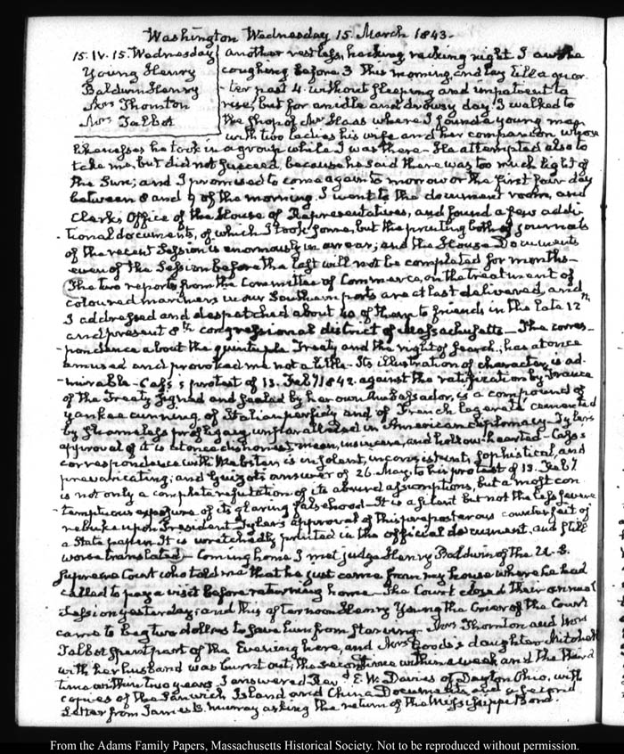 View full, authoritative transcriptions with page images of the diaries at John Quincy Adams Digital Diary part of the Primary Source Cooperative at the MHS.