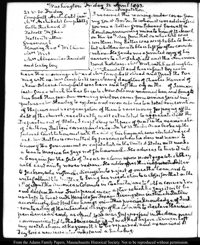 View full, authoritative transcriptions with page images of the diaries at John Quincy Adams Digital Diary part of the Primary Source Cooperative at the MHS.