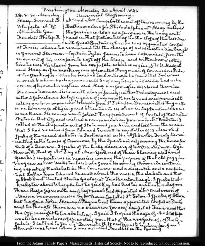View full, authoritative transcriptions with page images of the diaries at John Quincy Adams Digital Diary part of the Primary Source Cooperative at the MHS.