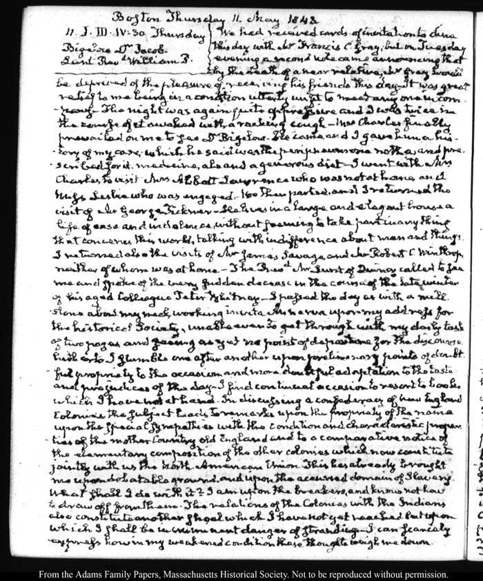 View full, authoritative transcriptions with page images of the diaries at John Quincy Adams Digital Diary part of the Primary Source Cooperative at the MHS.