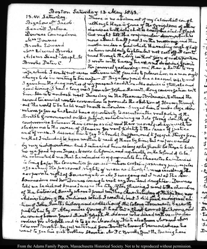 View full, authoritative transcriptions with page images of the diaries at John Quincy Adams Digital Diary part of the Primary Source Cooperative at the MHS.