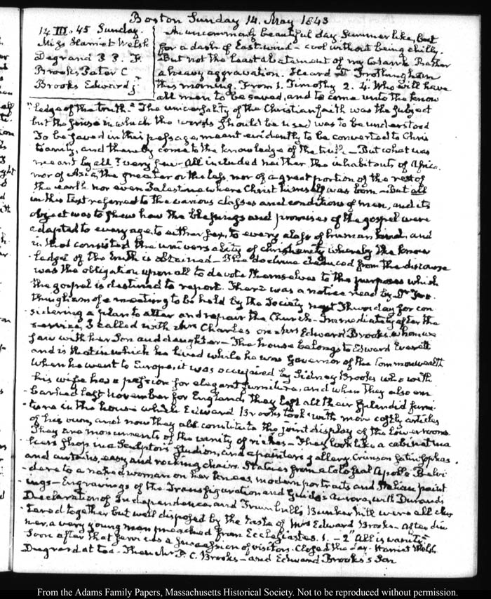 View full, authoritative transcriptions with page images of the diaries at John Quincy Adams Digital Diary part of the Primary Source Cooperative at the MHS.