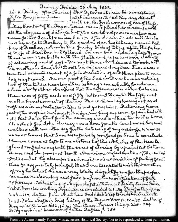 View full, authoritative transcriptions with page images of the diaries at John Quincy Adams Digital Diary part of the Primary Source Cooperative at the MHS.