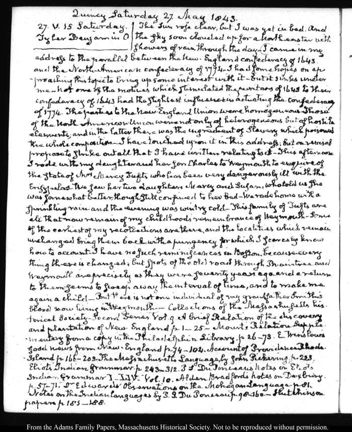 View full, authoritative transcriptions with page images of the diaries at John Quincy Adams Digital Diary part of the Primary Source Cooperative at the MHS.