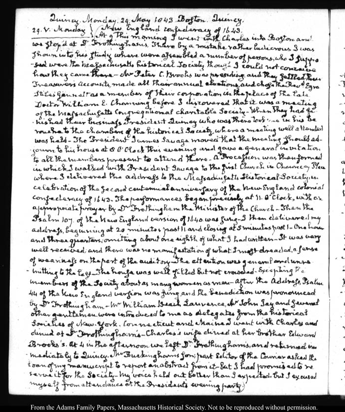 View full, authoritative transcriptions with page images of the diaries at John Quincy Adams Digital Diary part of the Primary Source Cooperative at the MHS.