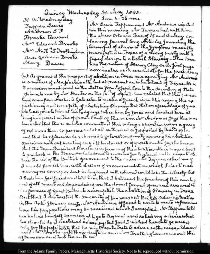 View full, authoritative transcriptions with page images of the diaries at John Quincy Adams Digital Diary part of the Primary Source Cooperative at the MHS.