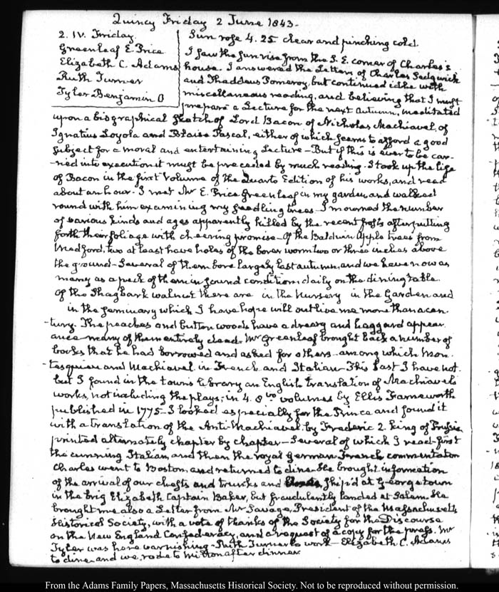 View full, authoritative transcriptions with page images of the diaries at John Quincy Adams Digital Diary part of the Primary Source Cooperative at the MHS.