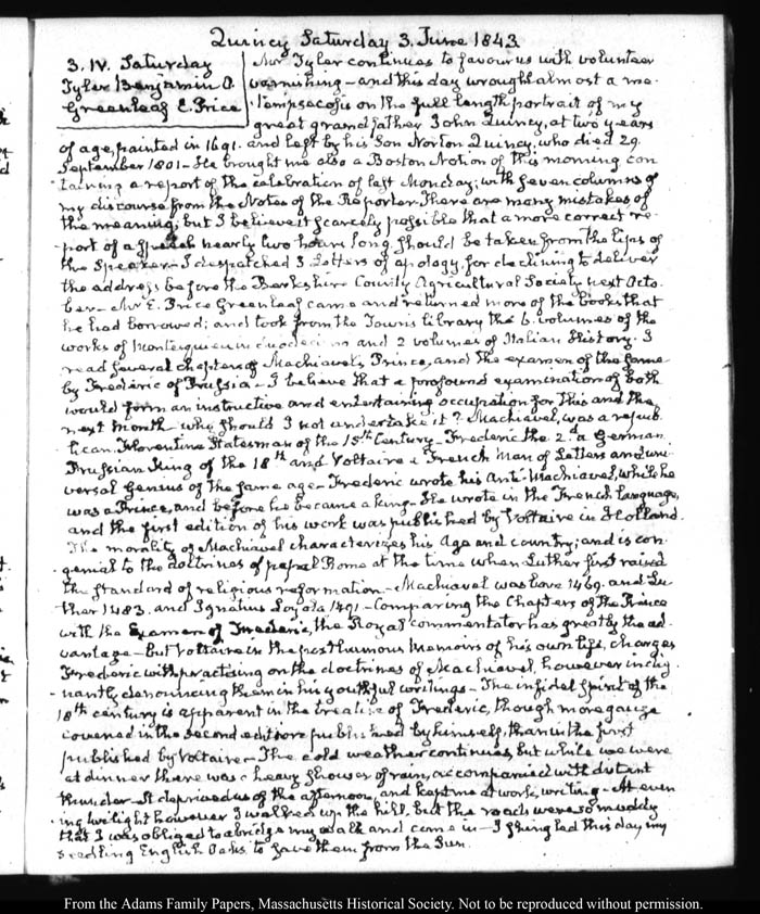 View full, authoritative transcriptions with page images of the diaries at John Quincy Adams Digital Diary part of the Primary Source Cooperative at the MHS.