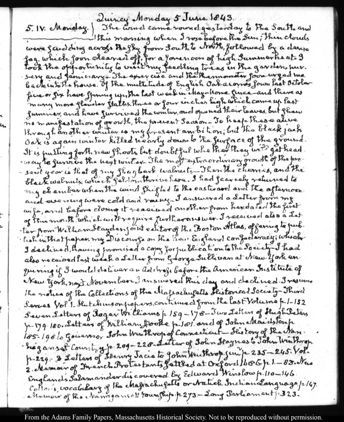 View full, authoritative transcriptions with page images of the diaries at John Quincy Adams Digital Diary part of the Primary Source Cooperative at the MHS.