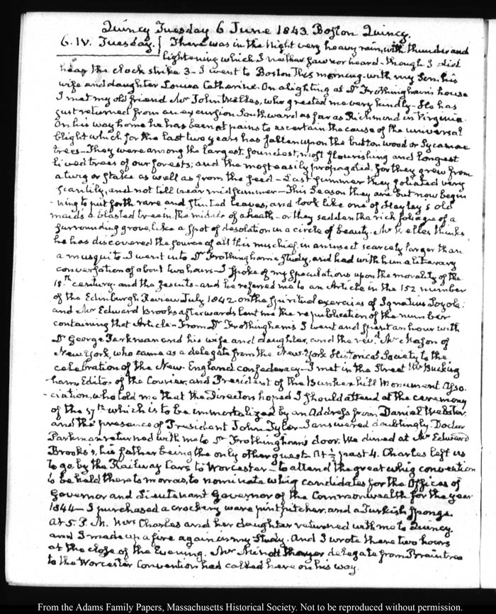 View full, authoritative transcriptions with page images of the diaries at John Quincy Adams Digital Diary part of the Primary Source Cooperative at the MHS.