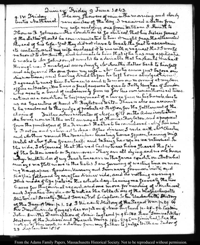 View full, authoritative transcriptions with page images of the diaries at John Quincy Adams Digital Diary part of the Primary Source Cooperative at the MHS.