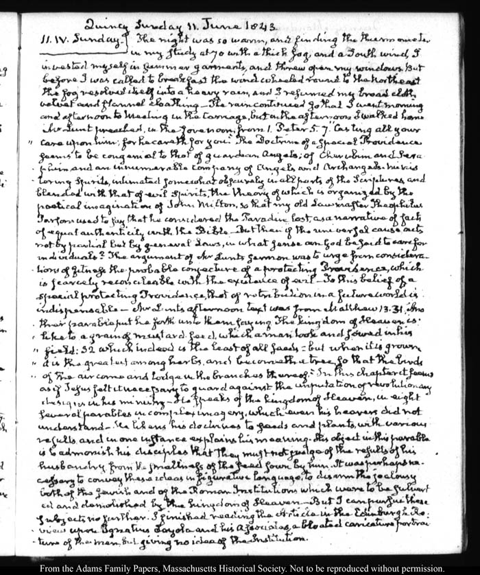 View full, authoritative transcriptions with page images of the diaries at John Quincy Adams Digital Diary part of the Primary Source Cooperative at the MHS.