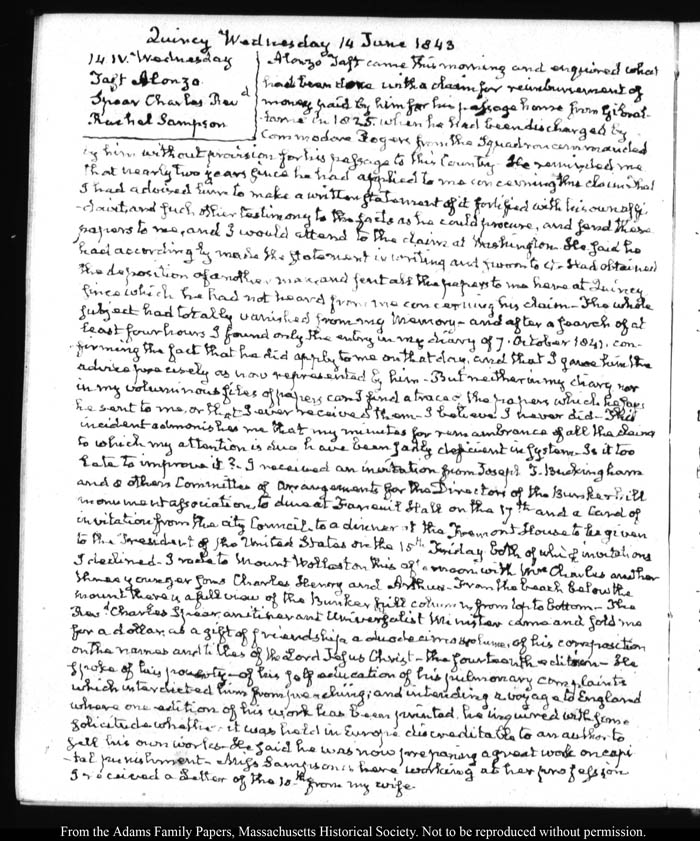 View full, authoritative transcriptions with page images of the diaries at John Quincy Adams Digital Diary part of the Primary Source Cooperative at the MHS.