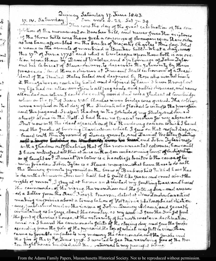 View full, authoritative transcriptions with page images of the diaries at John Quincy Adams Digital Diary part of the Primary Source Cooperative at the MHS.