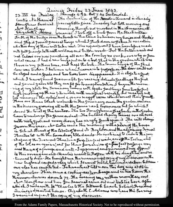 View full, authoritative transcriptions with page images of the diaries at John Quincy Adams Digital Diary part of the Primary Source Cooperative at the MHS.