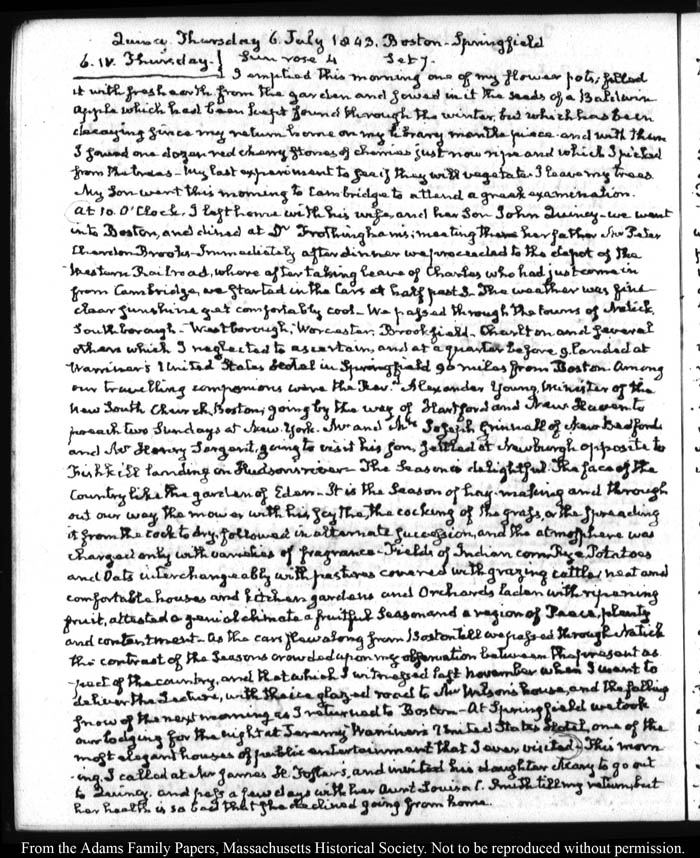 View full, authoritative transcriptions with page images of the diaries at John Quincy Adams Digital Diary part of the Primary Source Cooperative at the MHS.