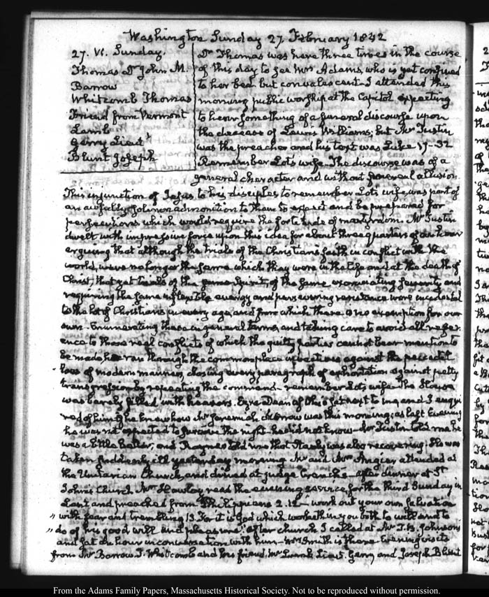 View full, authoritative transcriptions with page images of the diaries at John Quincy Adams Digital Diary part of the Primary Source Cooperative at the MHS.