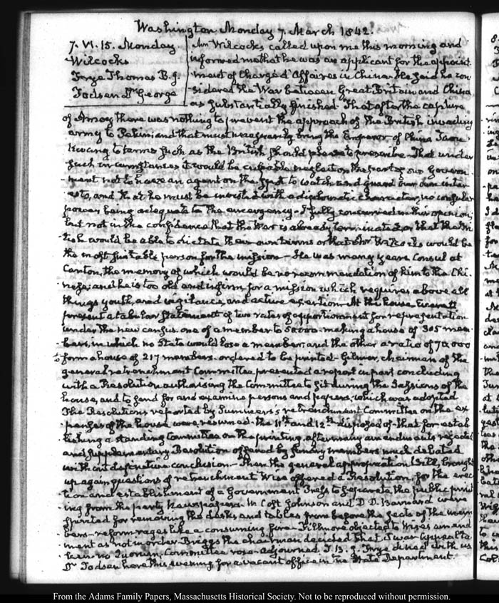 View full, authoritative transcriptions with page images of the diaries at John Quincy Adams Digital Diary part of the Primary Source Cooperative at the MHS.