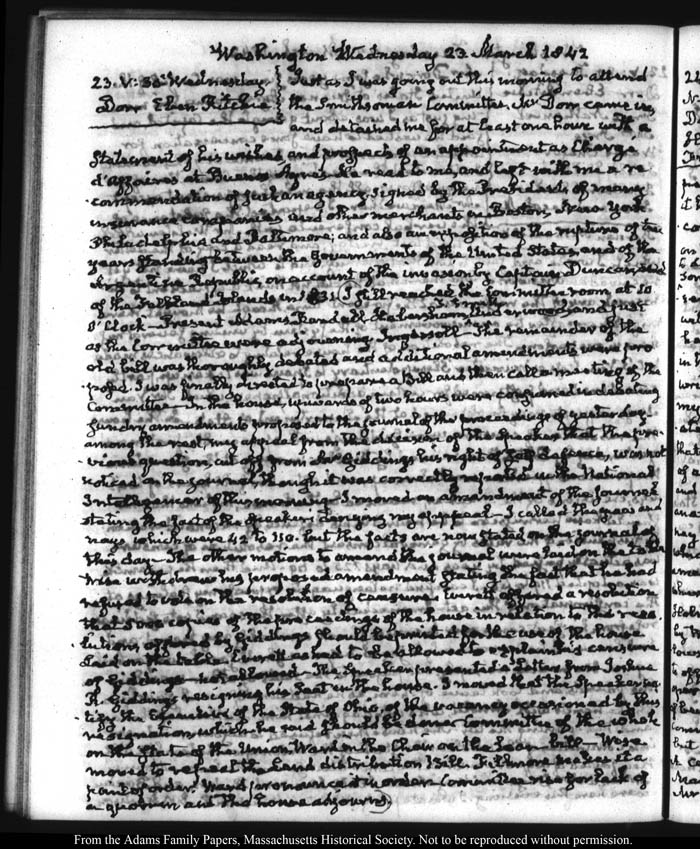 View full, authoritative transcriptions with page images of the diaries at John Quincy Adams Digital Diary part of the Primary Source Cooperative at the MHS.