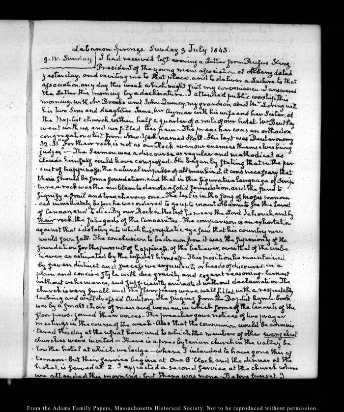 View full, authoritative transcriptions with page images of the diaries at John Quincy Adams Digital Diary part of the Primary Source Cooperative at the MHS.