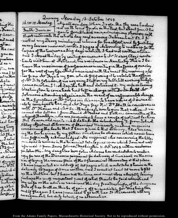 View full, authoritative transcriptions with page images of the diaries at John Quincy Adams Digital Diary part of the Primary Source Cooperative at the MHS.