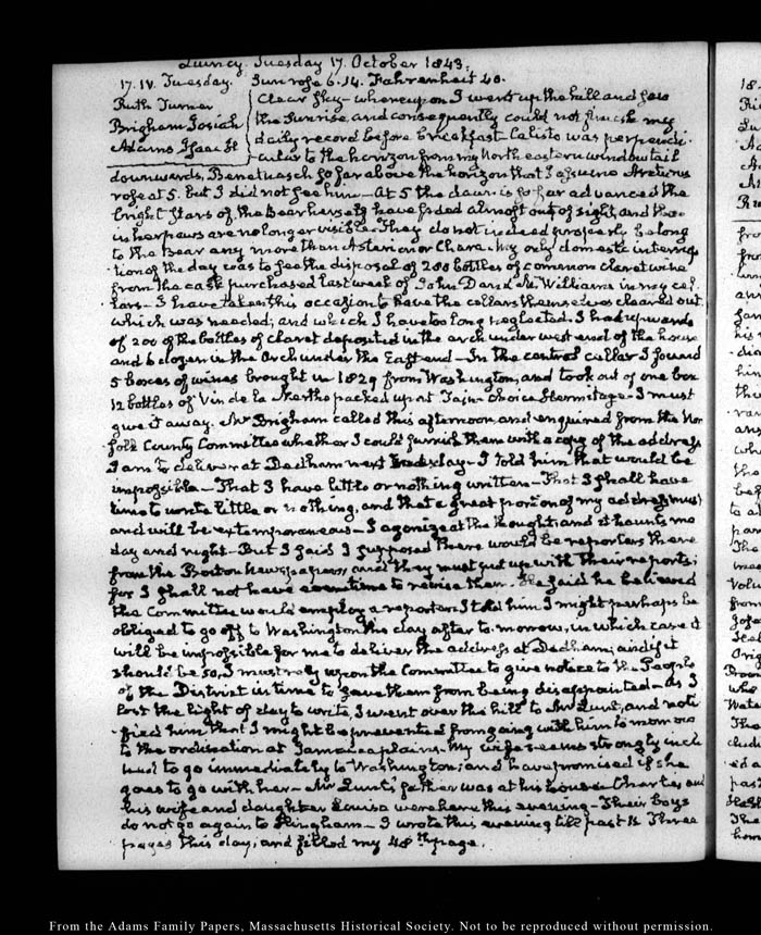 View full, authoritative transcriptions with page images of the diaries at John Quincy Adams Digital Diary part of the Primary Source Cooperative at the MHS.