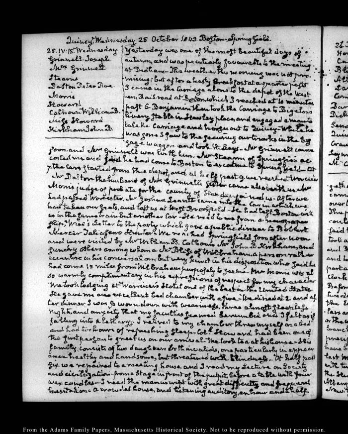 View full, authoritative transcriptions with page images of the diaries at John Quincy Adams Digital Diary part of the Primary Source Cooperative at the MHS.