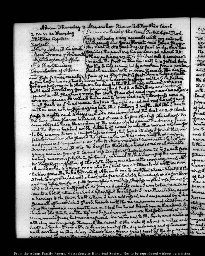 View full, authoritative transcriptions with page images of the diaries at John Quincy Adams Digital Diary part of the Primary Source Cooperative at the MHS.