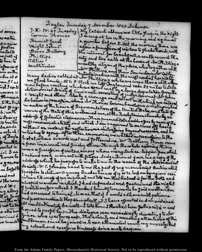 View full, authoritative transcriptions with page images of the diaries at John Quincy Adams Digital Diary part of the Primary Source Cooperative at the MHS.