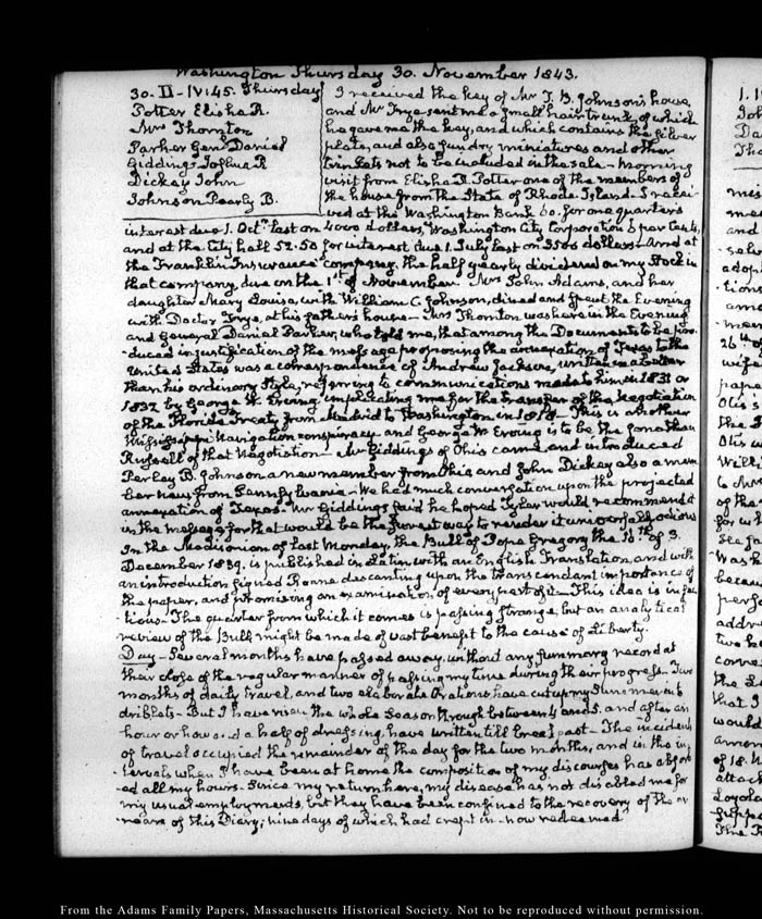 View full, authoritative transcriptions with page images of the diaries at John Quincy Adams Digital Diary part of the Primary Source Cooperative at the MHS.