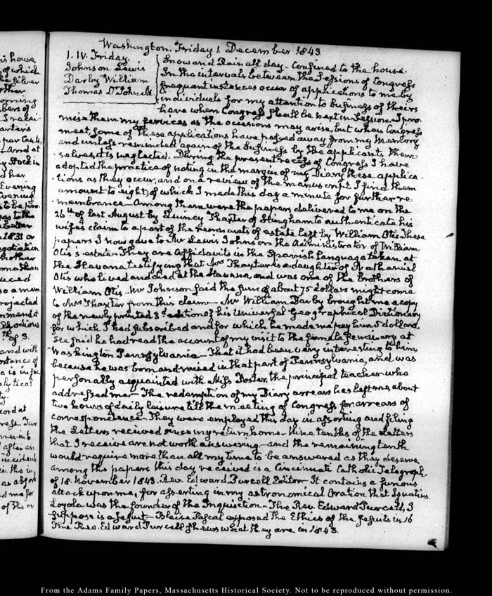 View full, authoritative transcriptions with page images of the diaries at John Quincy Adams Digital Diary part of the Primary Source Cooperative at the MHS.