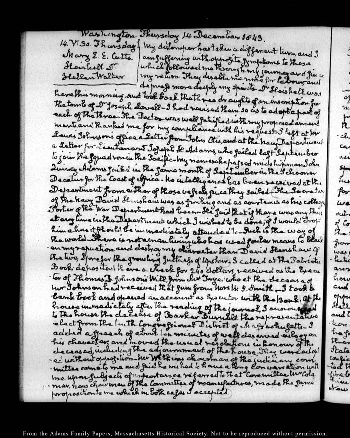 View full, authoritative transcriptions with page images of the diaries at John Quincy Adams Digital Diary part of the Primary Source Cooperative at the MHS.