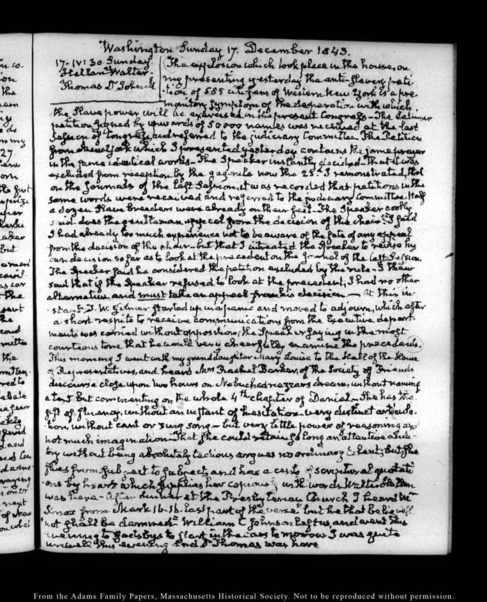 View full, authoritative transcriptions with page images of the diaries at John Quincy Adams Digital Diary part of the Primary Source Cooperative at the MHS.