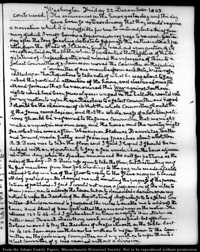 View full, authoritative transcriptions with page images of the diaries at John Quincy Adams Digital Diary part of the Primary Source Cooperative at the MHS.