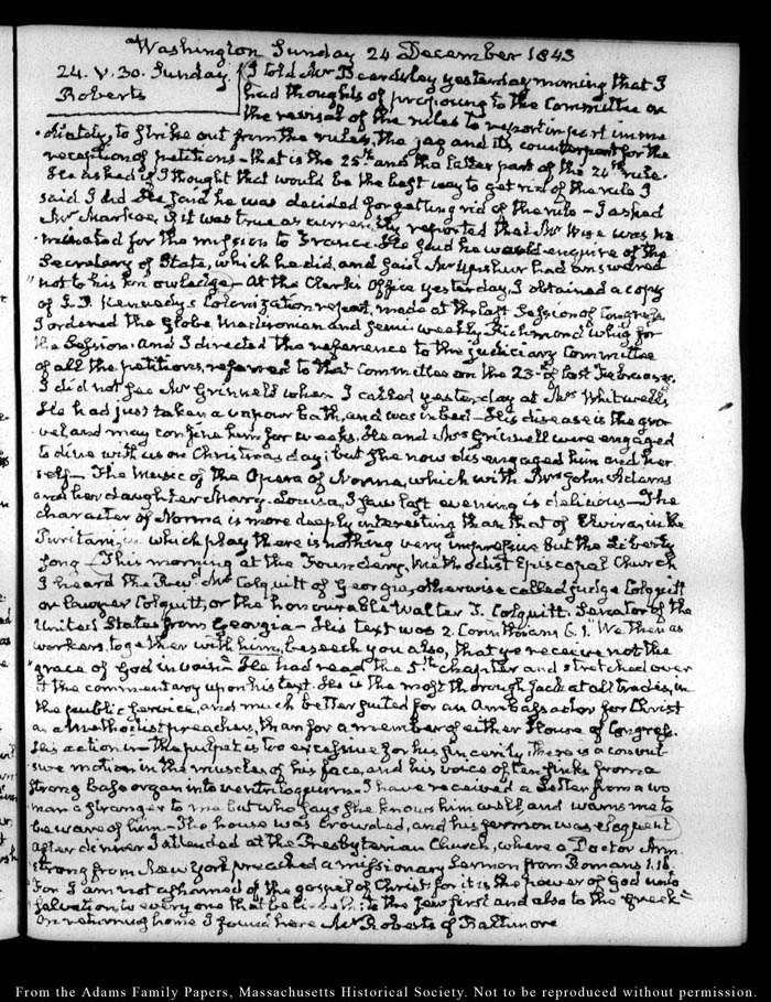 View full, authoritative transcriptions with page images of the diaries at John Quincy Adams Digital Diary part of the Primary Source Cooperative at the MHS.