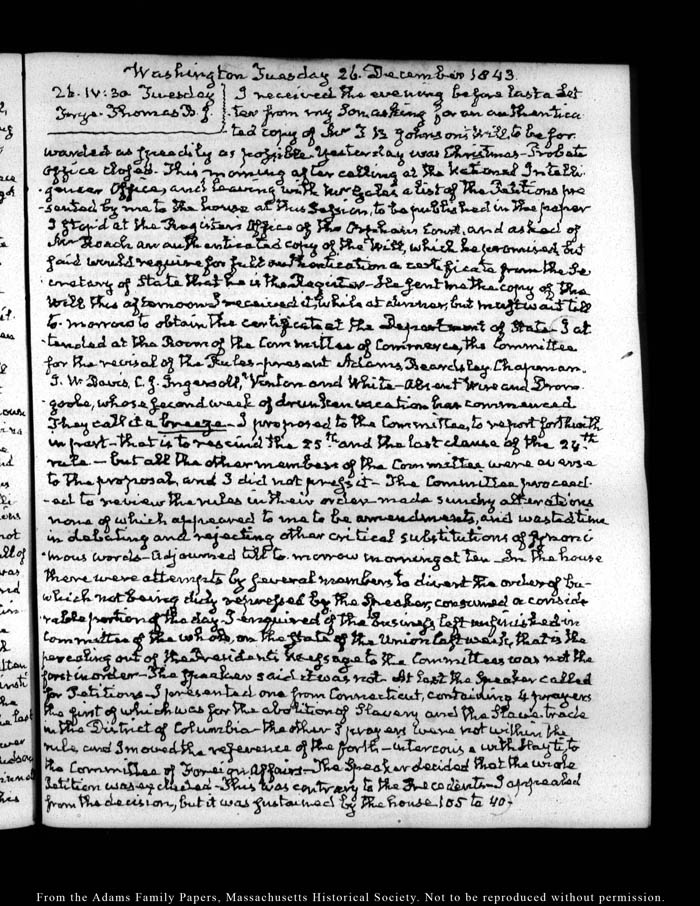 This is our legacy JQA diaries website and allows researchers to view the physical diaries page-by-page.