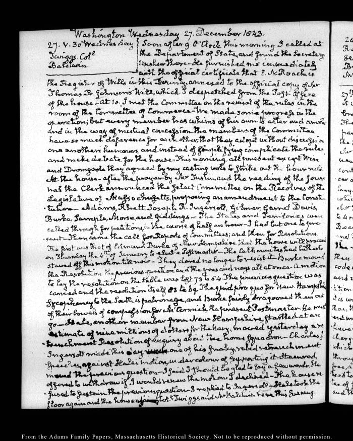 View full, authoritative transcriptions with page images of the diaries at John Quincy Adams Digital Diary part of the Primary Source Cooperative at the MHS.