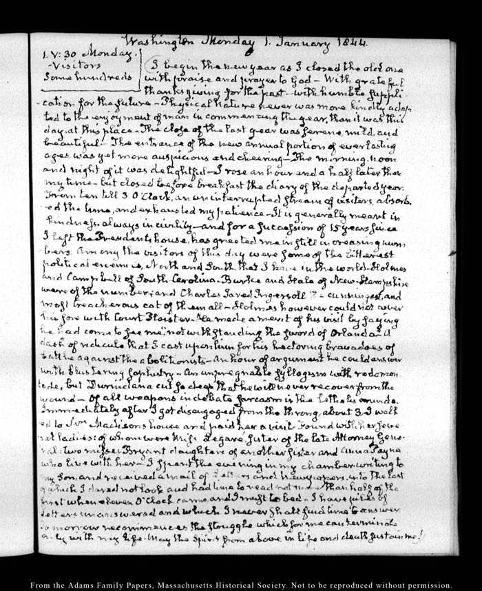 View full, authoritative transcriptions with page images of the diaries at John Quincy Adams Digital Diary part of the Primary Source Cooperative at the MHS.
