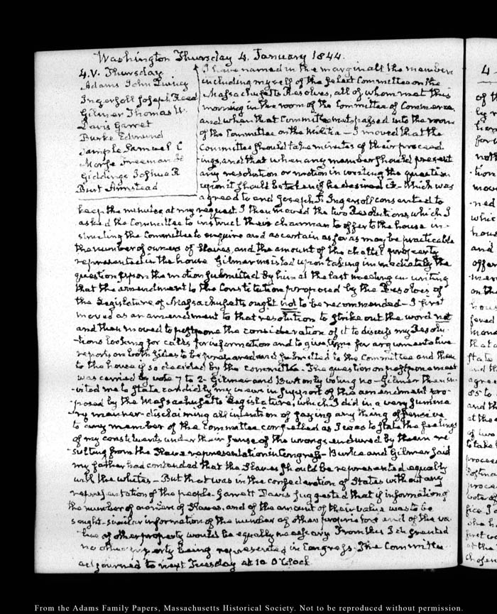 View full, authoritative transcriptions with page images of the diaries at John Quincy Adams Digital Diary part of the Primary Source Cooperative at the MHS.