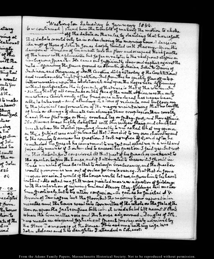 View full, authoritative transcriptions with page images of the diaries at John Quincy Adams Digital Diary part of the Primary Source Cooperative at the MHS.
