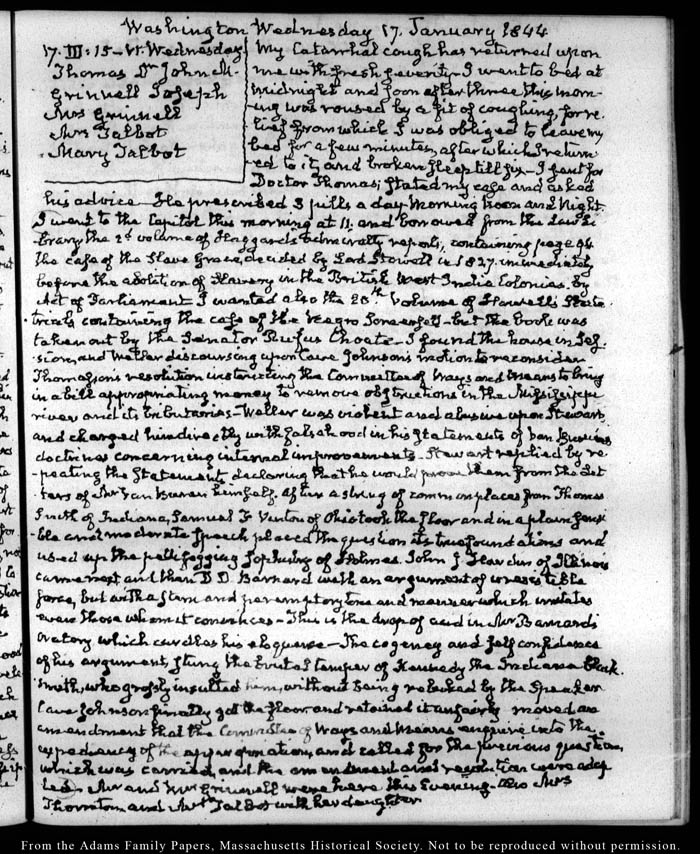 View full, authoritative transcriptions with page images of the diaries at John Quincy Adams Digital Diary part of the Primary Source Cooperative at the MHS.