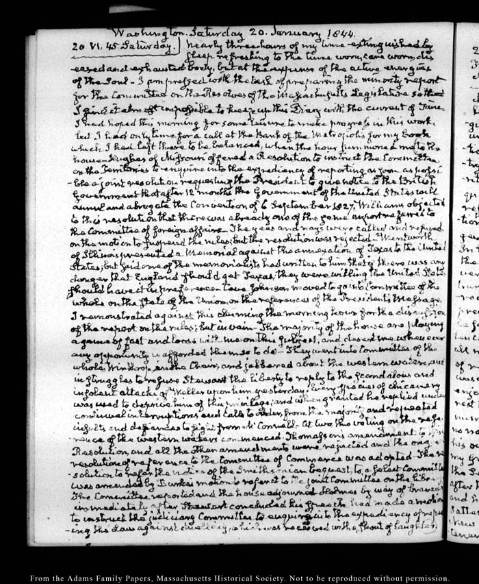 View full, authoritative transcriptions with page images of the diaries at John Quincy Adams Digital Diary part of the Primary Source Cooperative at the MHS.