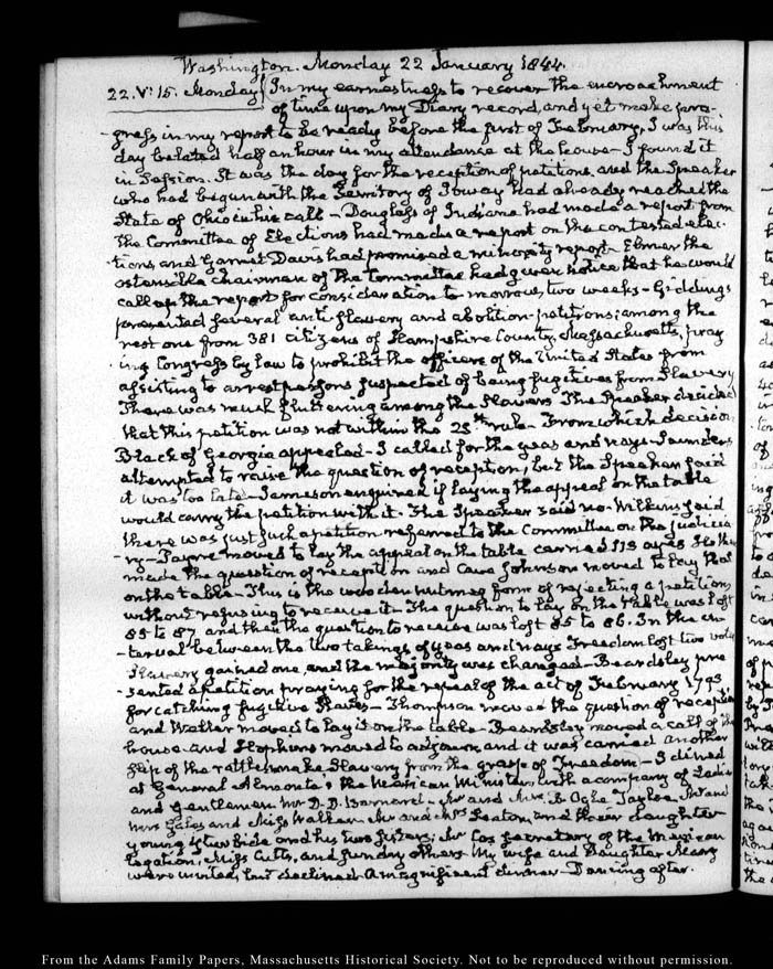 View full, authoritative transcriptions with page images of the diaries at John Quincy Adams Digital Diary part of the Primary Source Cooperative at the MHS.