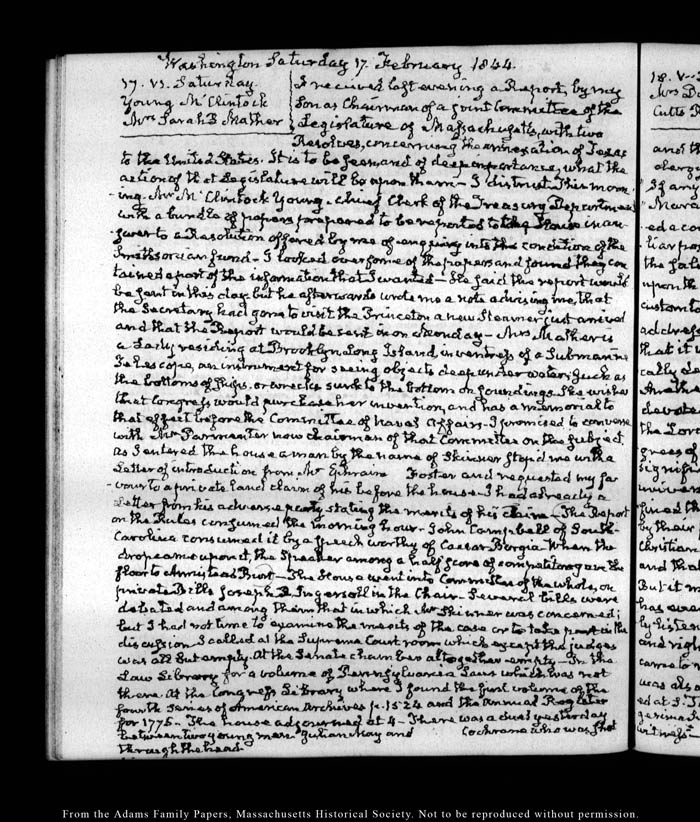 View full, authoritative transcriptions with page images of the diaries at John Quincy Adams Digital Diary part of the Primary Source Cooperative at the MHS.