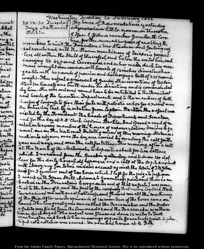 View full, authoritative transcriptions with page images of the diaries at John Quincy Adams Digital Diary part of the Primary Source Cooperative at the MHS.
